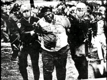 NARRATOR: Claiming to have a secret plan to end the war ... Richard Nixon had been elected President in 1968. But in 1970, he expanded the war ... ordering an invasion of Cambodia, Vietnam's neighbor. JANE FONDA: That Spring I drove across country for two months. And during that time, Nixon invaded Cambodia ... [FASCISM] four students were killed at Kent State, two were killed at Jackson State. I mean it was something. |