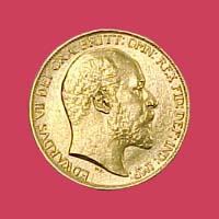 Berk Ltd. A gold 2 pound coin issued in Great Britain under King Edward