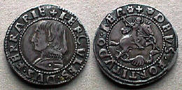 Italy, under Duke Guibaldus II (1538-74). The obverse depicts a weasel