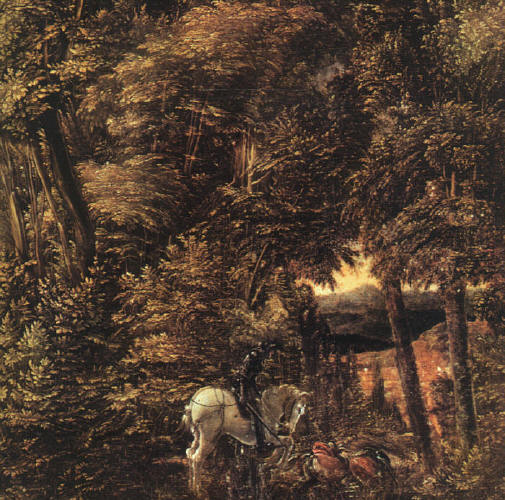 The painting "St. George in the Forest" by A. Altdorfer (1480-1538), dating 1510, at the Alte Pinakothek, Munich. Scan by C. Gerten.