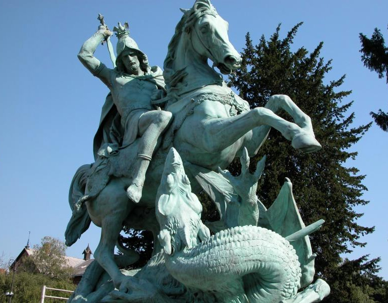 Dragon Slayer (St. George) statue in Zagreb, photo by Starosky
