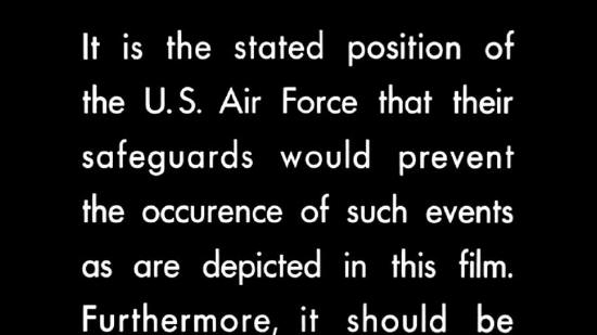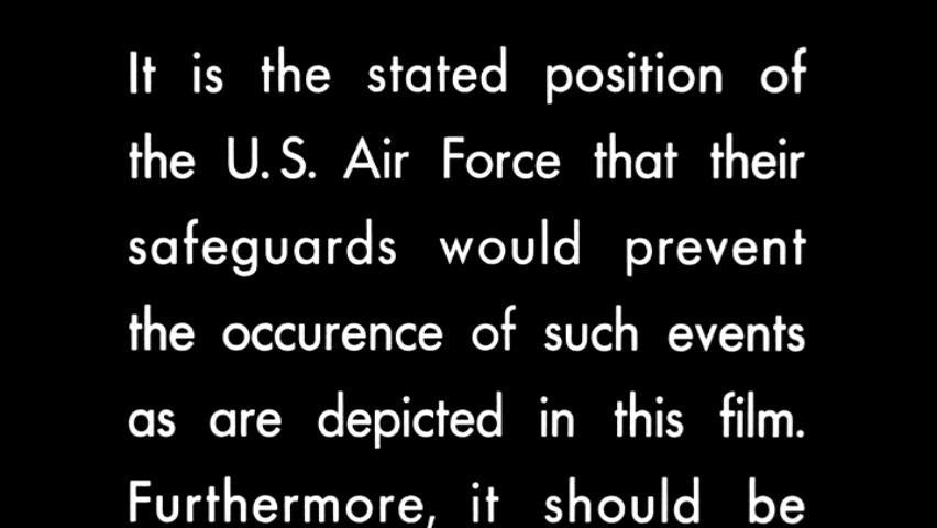 Narrator: It is the stated position of the U.S. Air Force that their safeguards would prevent the occurrence of such events as are depicted in this film. Furthermore, it should be noted that none of the characters portrayed in this film are meant to represent any real persons living or dead. For more than a year, ominous rumors had been privately circulating ... ... among high-level Western leaders ...