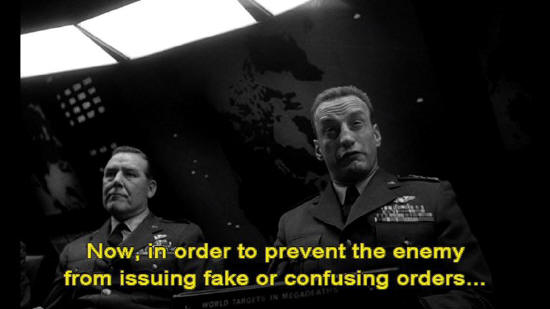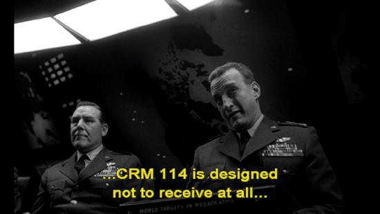 Now, in order to prevent the enemy from issuing fake or confusing orders ... ... CRM 114 is designed not to receive at all ... ... unless the message is proceeded ... ... by the correct three-letter code group prefix.