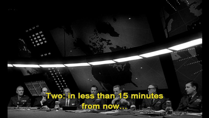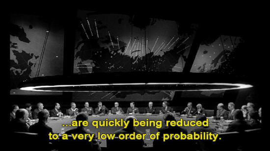 ... are quickly being reduced to a very low order of probability. Two: in less than 15 minutes from now ... ... the Russkies will be making radar contact with the planes. Three: when they do ...