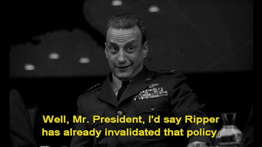 General Turgidson: Well, Mr. President, I'd say Ripper has already invalidated that policy. President: That was not an act of national policy. There are still alternatives open to us.