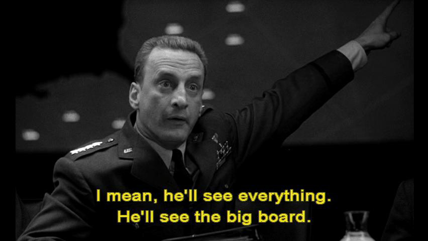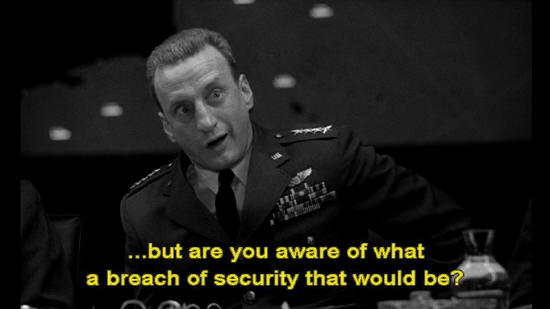 General Turgidson: I don't know exactly how to put this, sir ... ... but are you aware of what a breach of security that would be? I mean, he'll see everything. He'll see the big board.