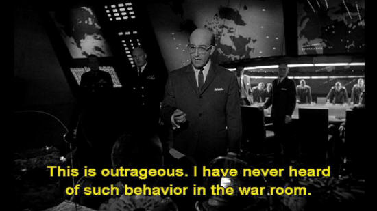 President: Mr. Ambassador! Ambassador Alexi: That's a damn lie! I saw him with my own eyes. President: This is outrageous. I have never heard of such behavior in the war room.