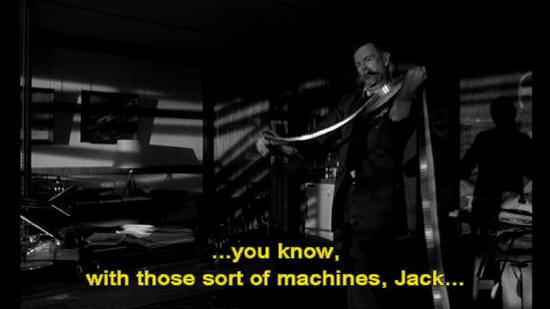 General Jack Ripper: Come over here and help me with this belt. Captain Mandrake: I haven't had very much experience ... ... you know, with those sort of machines, Jack ... ... I've only ever pressed a button in my old Spitfire.