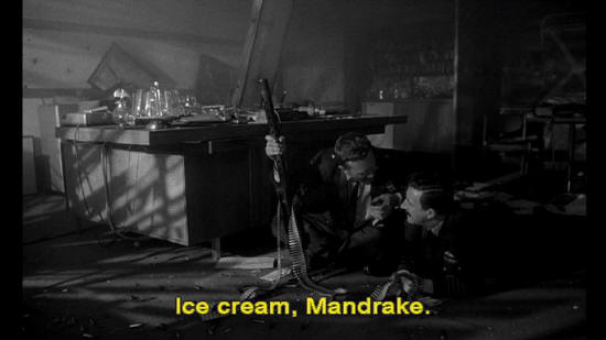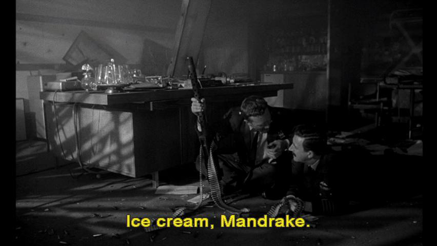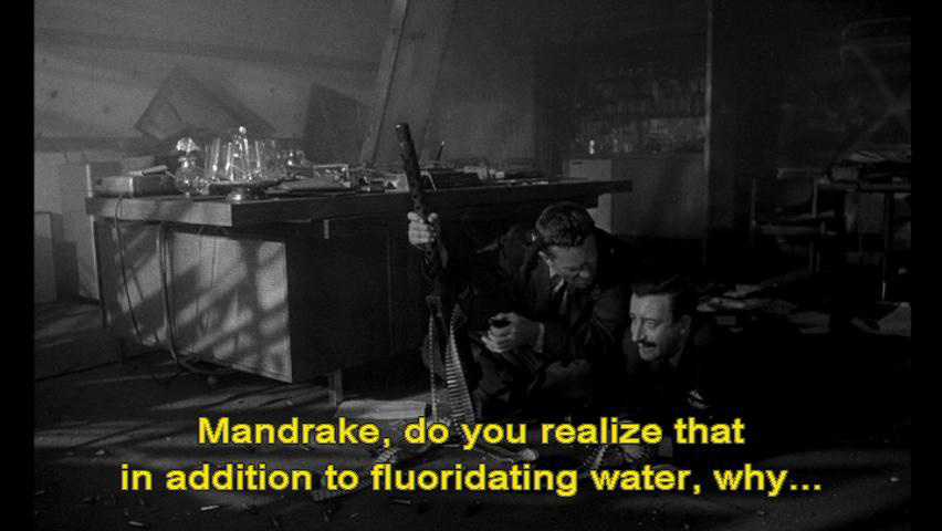 Mandrake, do you realize that in addition to fluoridating water, why ... ... there are studies underway to fluoridate salt, flour ... ... fruit juices, soup, sugar, milk, ice cream? Ice cream, Mandrake.