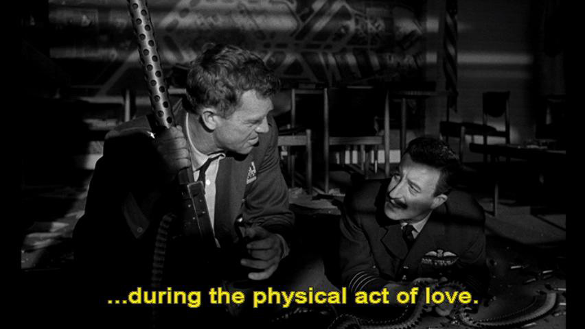 General Jack Ripper: Well, I ... I first became aware of it, Mandrake ... ... during the physical act of love.