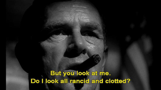 But you look at me. Do I look all rancid and clotted? You look at me, Jack. Look. And I drink a lot of water, you know. I'm what you might call a water man. And I can swear to you, my boy, swear to you...