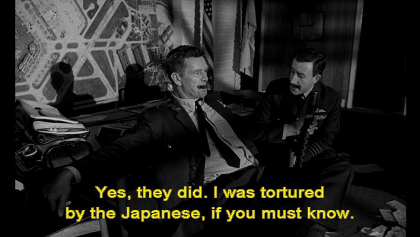 Captain Mandrake: Yes, I was, as a matter of fact, Jack. General Jack Ripper: Did they torture you? Captain Mandrake: Yes, they did. I was tortured by the Japanese, if you must know. Not a pretty story. General Jack Ripper: What happened?