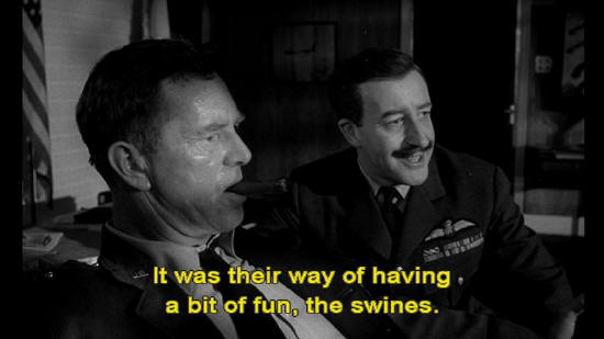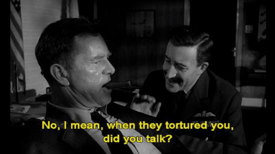 General Jack Ripper: No, I mean, when they tortured you, did you talk? Captain Mandrake: No, I ... Well, I don't think they wanted me to talk, really, or say anything. It was their way of having a bit of fun, the swines.