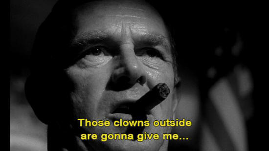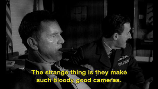 The strange thing is they make such bloody good cameras. General Jack Ripper: Those clowns outside are gonna give me ... ... a pretty good going-over in a few minutes for the code. Captain Mandrake: Yes --
