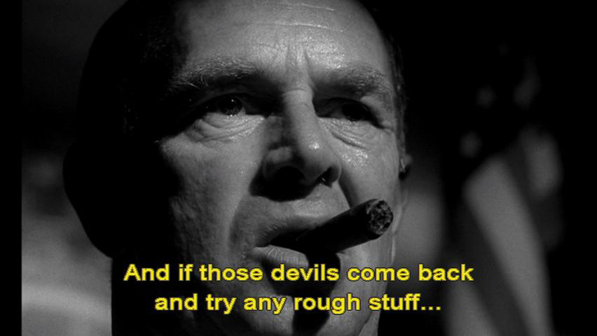 And if those devils come back and try any rough stuff ... ... we'll fight them together, like we did just now on the floor. You with your gun and me with a belt and the ammo, feeding you. "Feed me," you said, and I was feeding you, Jack.
