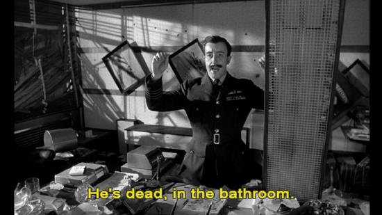 Captain Mandrake: He's dead, in the bathroom.