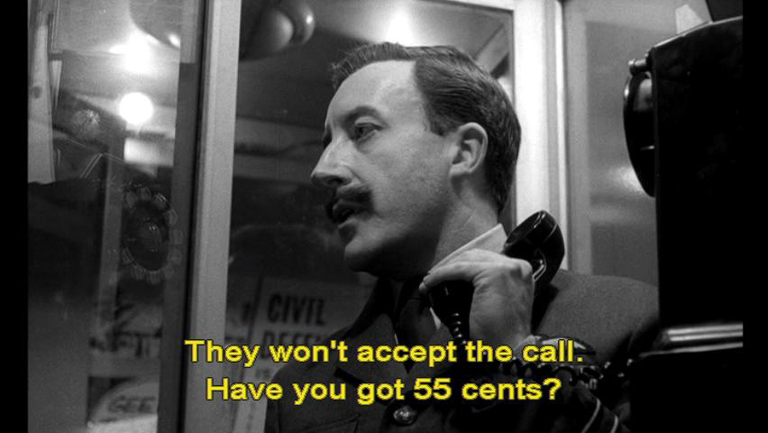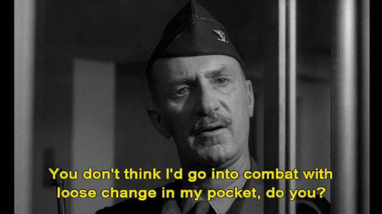 Just one second, operator. They won't accept the call. Have you got 55 cents? Colonel: You don't think I'd go into combat with loose change in my pocket, do you?