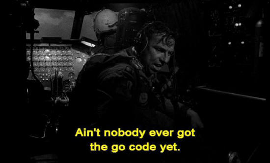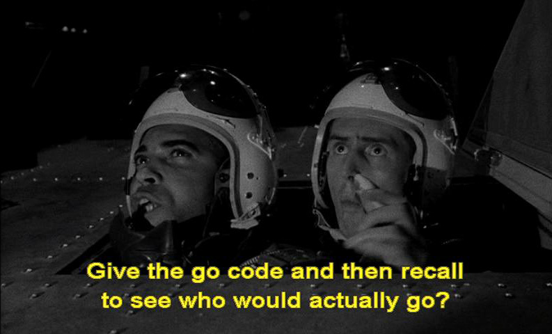 Give the go code and then recall to see who would actually go? Major Kong: Ain't nobody ever got the go code yet. Old Ripper wouldn't be giving us Plan R ... ... unless them Russkies had clobbered Washington ...