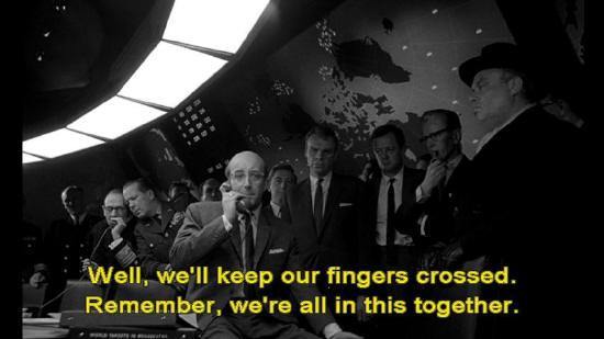 Major Kong: All right. Designating new target: 384. Give me a heading on that as soon as you get it worked out. President: Well, we'll keep our fingers crossed. Remember, we're all in this together.
