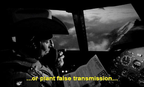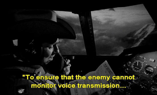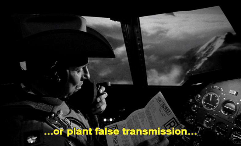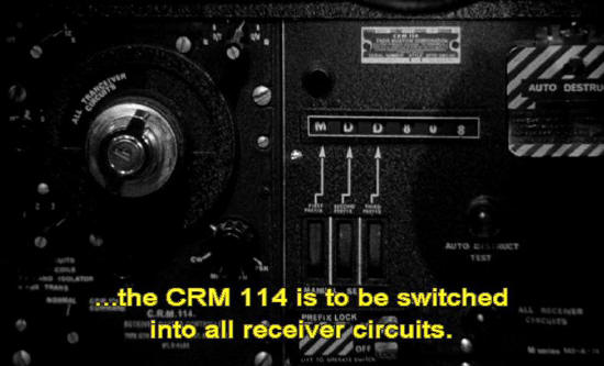 "To ensure that the enemy cannot monitor voice transmission ... ... or plant false transmission ... ... the CRM 114 is to be switched into all receiver circuits. The emergency base code prefix is to be set ...