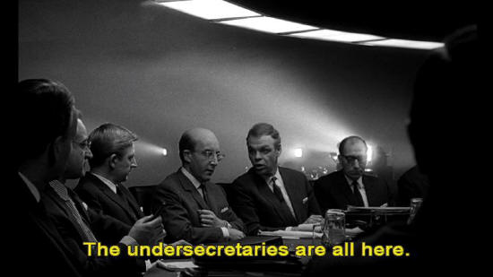 Staines: Mr. President, the secretary of state is in Vietnam. The secretary of defense is in Laos, the vice president is in Mexico City. We can establish contact with them at any time. The undersecretaries are all here.
