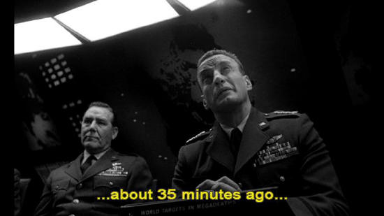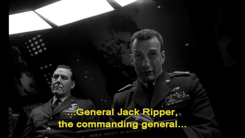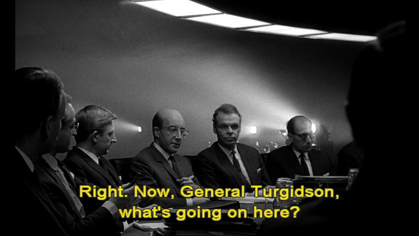President: Right. Now, General Turgidson, what's going on here? General Turgidson: Mr. President ... ... about 35 minutes ago ... ... General Jack Ripper, the commanding general ...