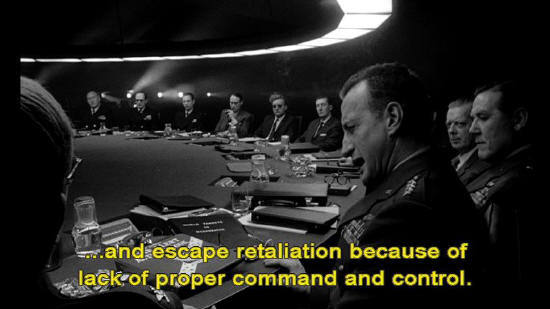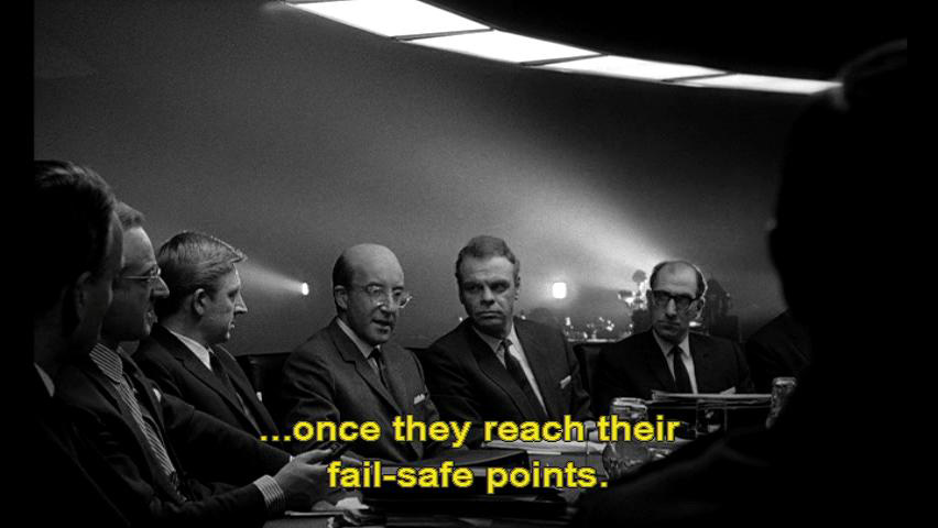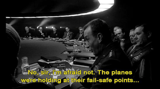 ... and escape retaliation because of lack of proper command and control. President: I assume, the planes will return automatically ... ... once they reach their fail-safe points. General Turgidson: No, sir, I'm afraid not. The planes were holding at their fail-safe points ...
