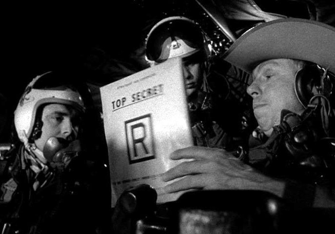 Johnson Directed and Produced by Stanley Kubrick Clerk: General Ripper, sir. Capt. Mandrake: Group Captain Mandrake speaking. General Jack Ripper: This is General Ripper speaking. Captain Mandrake: Yes, sir. General Jack Ripper: Do you recognize my voice? Captain Mandrake: I do, sir. Why do you ask? General Jack Ripper: Why do you think I ask? Captain Mandrake: Well, I don't know, sir. We spoke just a few moments ago, didn't we? General Jack Ripper: You don't think I'd ask unless it was pretty damned important, do you? Captain Mandrake: No, I don't, sir, no. General Jack Ripper: Let's see if we can stay on the ball. Has the wing confirmed holding at their fail-safe points? Captain Mandrake: Yes, sir. The confirmations have all just come in. General Jack Ripper: Very well. Now, listen to me carefully. The base is being put on condition red. I want this flashed to all sections immediately. Captain Mandrake: Condition red. Jolly good idea. Keeps the men on their toes. General Jack Ripper: I'm afraid this is not an exercise. Captain Mandrake: Not an exercise, sir? General Jack Ripper: I shouldn't tell you this, but you're a good officer and have a right to know. It looks like we're in a shooting war. Captain Mandrake: Oh, hell. Are the Russians involved? General Jack Ripper: That's all I've been told. It came in on the red phone. I'm gonna follow orders and seal this base tight. Now, I want you to transmit Plan R, R for Robert, to the wing. Plan R for Robert. Captain Mandrake: Is it that bad, sir? General Jack Ripper: Looks like it's pretty hairy. Captain Mandrake: Yes, sir. Plan R for Robert, sir. General Jack Ripper: Now, last, and possibly most important, I want all privately-owned radios to be immediately impounded. They might be used to issue instructions to saboteurs. As I previously arranged, Air Police will have lists of all owners. I want every single one of them collected without exception. After you've done that, report back to me. *** Narrator: In order to guard against surprise nuclear attack, America's Strategic Air Command maintains a large force of B-52 bombers airborne 24 hours a day. Each B-52 can deliver a nuclear bomb load of 50 megatons, equal to 16 times the total explosive force of all the bombs and shells used by all the armies in World War II. Based in America, the Airborne Alert Force is deployed from the Persian Gulf to the Arctic Ocean. But they have one geographical factor in common: They are all two hours from their targets inside Russia. *** Goldie: Major Kong, I know you'll think this is crazy, but I just got a message from base over the CRM 114. It decodes as wing attack Plan R. R for Romeo. Major Kong: Goldie, did you say wing attack Plan R? Goldie: Yes, sir, I have Major Kong: Goldie, how many times have I told you guys that I don't want no horsing around on the airplane? Goldie: I'm not horsing around, sir, that's how it decodes. Major Kong: Well, I've been to one world fair, a picnic and a rodeo, and that's the stupidest thing I ever heard over earphones. You sure you got today's code? Goldie: Yes, sir, it is. Major Kong: There's just gotta be something wrong. Wait a second, I'm coming back. Maybe you'd better get a confirmation from base. Goldie: Yes, sir. Bombardier: Major Kong, is it possible this is some kind of loyalty test? Give the go code and then recall to see who would actually go? Major Kong: Ain't nobody ever got the go code yet. Old Ripper wouldn't be giving us Plan R unless them Russkies had clobbered Washington and a lot of other towns with a sneak attack. Bombardier: Yes, sir. Goldie: Major Kong, message from base confirmed. Major Kong: Well, boys, I reckon this is it. Nuclear combat toe-to-toe with the Russkies. Now, look, boys, I ain't much of a hand at making speeches. But I got a pretty fair idea that something doggone important is going on back there. Now, I've got a fair idea of the kind of personal emotions that some of you fellows may be thinking. Heck, I reckon you wouldn't even be human beings if you didn't have strong personal feelings about nuclear combat. But I want you to remember one thing: That folks back home is counting on you, and by golly, we ain't about to let them down. Tell you something else. If this thing turns out to be half as important as I figure it just might be, I'd say that you're all in line for some important promotions and personal citations when this thing's over with. And that goes for every last one of you, regardless of your race, color or your creed. Now, let's get this thing on the hump. We got some flying to do. *** Miss Scott: Buck, should I get it? General Turgidson: Yeah, you have to. Miss Scott: Hello? Yes, General Turgidson is here, but he can't come to the phone at the moment. Well, this is his secretary, Miss. Scott. Freddie, how are you? Fine, and you? Oh, we were just catching up on some of the general's paperwork. Well, look, Freddie, he's tied up at the moment. I'm afraid he can't come to the phone. Just a minute. General Turgidson, a Colonel Puntrich calling. General Turgidson: Tell him to call back. Miss Scott: Freddie, the general says could you call back in a minute or two? -- [to Buck] He says it can't wait. General Turgidson: For Pete's -- Find out what he wants. Miss Scott: Freddie, the thing is, the general is in the powder room right now. Could you tell me what it's about? Just a second. -- [to Buck] Apparently they monitored a transmission eight minutes ago from Burpelson Air Force Base. Right. It was directed to the 843rd bomb wing on airborne alert. It decoded as wing attack Plan R. General Turgidson: Well, tell him to call what's-his-name, the base commander. Ripper. Do I have to think of everything? Miss Scott: [To Freddie] The general suggests you call General Ripper, the 843rd base commander. [To Buck] All communications are dead. General Turgidson: Bull! Tell him to do it himself. Miss Scott: Freddie, the general asks if you could possibly try again yourself. I see. -- [