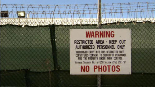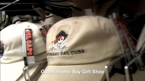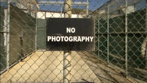 He's in solitary confinement by himself. NO PHOTOGRAPHY [Narrator] What's the problem with the press photographing them? Talking with them? Observing them? WARNING. RESTRICTED AREA. KEEP OUT. AUTHORIZED PERSONNEL ONLY. NO PHOTOS. [Brigadier General Jay Hood, Commander Joint Task Force, Guantanamo 2004-2006] The desire to not provide a platform ... to have the men we're holding espouse vile, Islamic rhetoric. A violent, vile, Islamic rhetoric! GUANTANAMO BAY GIFT SHOP (Displaying violent vile Illuminati rhetoric, including Skull & Bones, Dragon, & Maltese Cross)