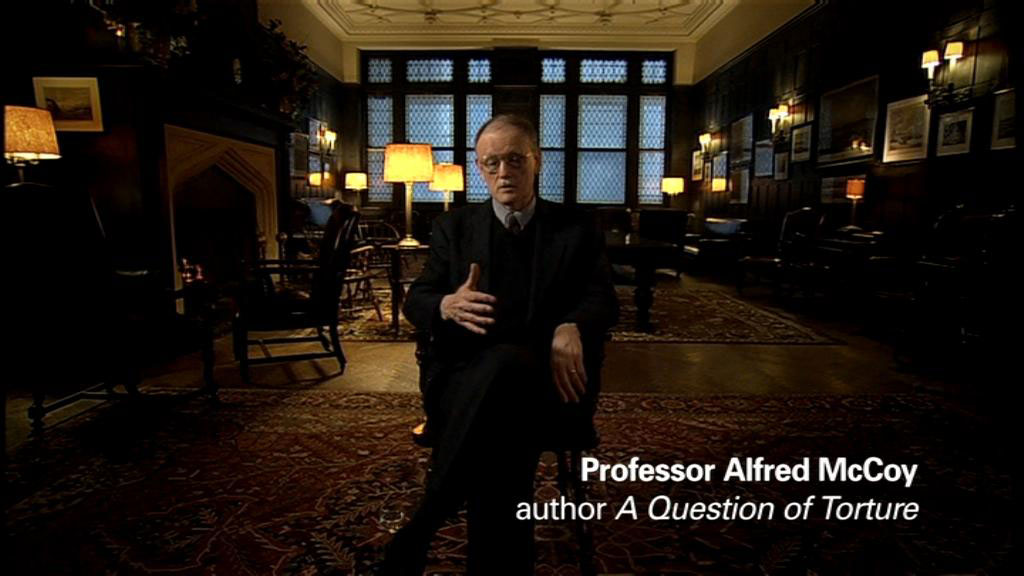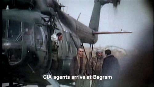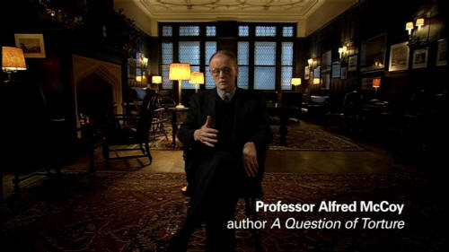 [Senator John McCain] Is it still permissible to use a wet towel and dripping water to induce the misperception of suffocation? [Lt. General Randall M. Schmidt, Author of "Schmidt Report"] The use of the wet towel, dripping water to induce the misperception of suffocation was one of the techniques requested by the JTF in their laundry list given up. It was never approved. It has never been a technique approved. [Professor Alfred McCoy, author A Question of Torture] One of the techniques that made the transition from the regime of the physical to the psychological -- in fact the only one -- was waterboarding. Because in the medieval era, under the Inquisition, it was done because of its horrible, physical aspects. It was done to purge and punish the heretic. You force water down the throat of the victim. The victim thinks that he's drowning. It's horrible. Your body tells you that you're dying. CIA AGENTS ARRIVE AT BAGRAM Right after 9/11, the CIA got approval from the White House for waterboarding. [Narrator] An early test case involved the interrogation of Ibn Sheikh al Libi, a man suspected of being the Emir of an al Qaeda training camp.