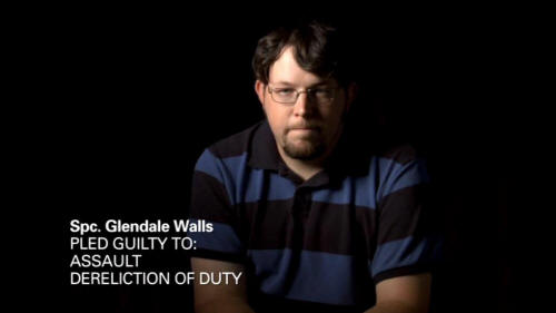 [Spc. Glendale Walls, Pled Guilty to: Assault, Dereliction of Duty] I had to plead guilty to assault, and two counts of dereliction of duty. In exchange, they would say that I could go to jail for no more than four months. [John Galligan, Willie Brand's Attorney, Former U.S. Army Judge] Rather than spend the money that was being spent for that trial... I think it could have been better spent in working on Army doctrine ... to make sure that other people go into battle properly equipped, properly led ... and with a full understanding as to what their new roles and responsibilities are. [William Cassara, Damien Corsetti's Attorney] When a detainee is abused, or a detainee claims abuse ... they want somebody to take the fall for it.
