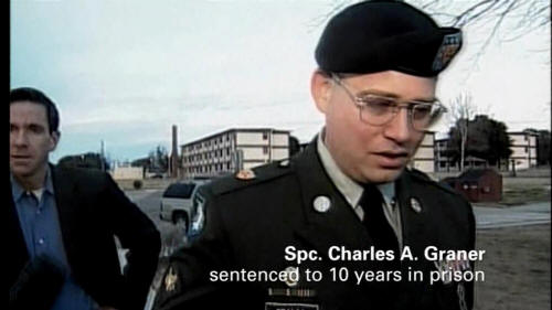 Spc. Charles A. Graner, sentenced to 10 years in prison. [Narrator] The soldiers in the photos are military police ... or MPs, whose job it was to guard and protect the prisoners. In their statements, the MPs claimed that Military Intelligence, or MI, ordered them to weaken, humiliate, and break the prisoners ... for interrogation purposes.