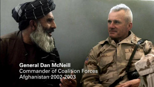 General Dan McNeill, Commander of Coalition Forces, Afghanistan 2002-2003 [Carlotta Gall] Did the treatment they received in those rooms cause the death of these two men? [General Dan McNeill, Commander of Coalition Forces, Afghanistan 2002-2003] First, we're not chaining people to the ceiling. I think you asked me that question before. [Carlotta Gall] "First, we're not chaining people to the ceiling." That's what he says. [Narrator] Carlotta Gall is a New York Times journalist based in Kabul. Unsatisfied with the Military's explanation of the two deaths at Bagram, she set out to investigate.