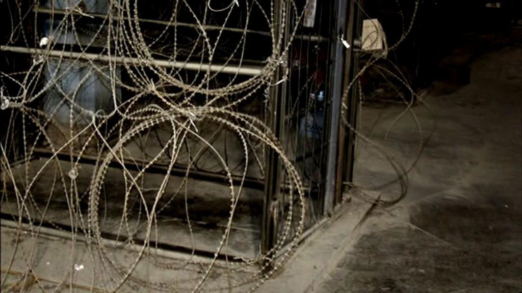 and a lot of that could have been avoided had you known the person before you had fought with them, and used that exact technique. [Moazzam Begg, British subject detained at Bagram and Guantanamo 2002-2005] When they eventually came to take him to an isolation cell, I believe his body had become almost limp. One of the reasons why they began punching him was that they felt he was putting it on. He was in the airlock standing there with a hood over his head. He had his hands tied above his head, and he was moaning. [Sgt. Anthony Morden, Military Police, Bagram] He started to fight right there in the airlock. And the airlock has a front gate and a back gate. But both sides are concertina wire. Neither of us officers wanted to get into the concertina wire. So we pulled him out of the airlock and put him on the floor, and put him into restraints.