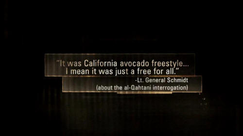 and he is the genesis for the request by the Joint Task Force at Guantanamo for more techniques that might be able to get past his resistance training. [Narrator] In September 2002, John Yoo and Alberto Gonzales ... traveled to Guantanamo. Soon after their visit ... and just before Dilawar's arrival at Bagram ... Donald Rumsfeld personally approved a new menu of psychological interrogation techniques for use on Mohamed al-Kahtani. Exactly how the techniques would be applied was often left to the imagination of the interrogators. [Lt. General Randall M. Schmidt, Author of "Schmidt Report"] It was California avocado freestyle ... I mean it was just a free for all (about the al-Qahtani interrogation).