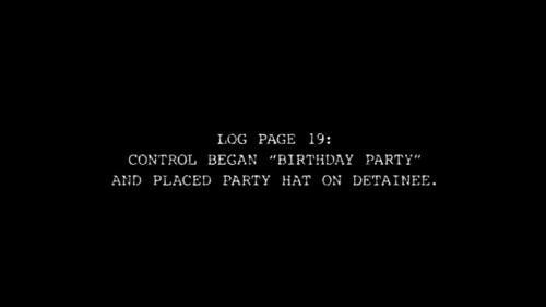 LOG PAGE 47: TOLD DETAINEE THAT A DOG IS HELD IN HIGHER ESTEEM THAN HE IS [Gita Gutierrez, Lawyer for Mohammed al-Qahtani] They've tried to characterize it as ... individual interrogators pushing the envelope, or starting to get (quote) "creative." LOG PAGE 35: SISSY SLAP GLOVE IS INFLATED AND PERIODICALLY TOUCHED TO DETAINEE'S FACE LOG PAGE 17: DETAINEE GIVEN AN ENEMA. LOG PAGE 19: CONTROL BEGAN "BIRTHDAY PARTY" AND PLACED PARTY HAT ON DETAINEE.