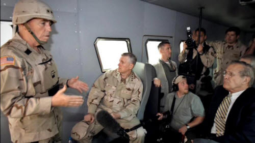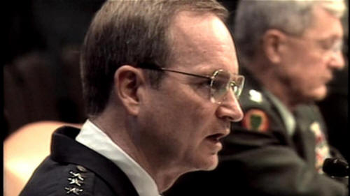[Lt. General Randall M. Schmidt, Author of "Schmidt Report"] To our knowledge there was a considerable amount of communication up and down the chain. [Professor Alfred McCoy, Author of "A Question of Torture"] As you know, from General Schmidt's report, he concluded that these techniques ... individually did not constitute torture. But he said that the sum of these techniques ... [Lt. General Randall M. Schmidt, Author of "Schmidt Report"] The cumulative effect of simultaneous applications of numerous, authorized techniques had abusive and degrading impact on the detainee. U.S. ARMY DECLINED TO DISCIPLINE GEN. MILLER [Narrator] And he recommended that General Miller be disciplined. [Professor Alfred McCoy, Author of "A Question of Torture"] But he said it did not constitute torture. [Lt. General Randall M. Schmidt, Author of "Schmidt Report"] We made a distinction between what torture and inhumane treatment would be, given the general guidelines, and then what might be abusive and degrading. Something might be degrading, but not necessarily torture. And it may not be inhumane. It may be humiliating, but it may not be torture. No torture, no physical pain injury. There was a safe, secure environment the entire time.
