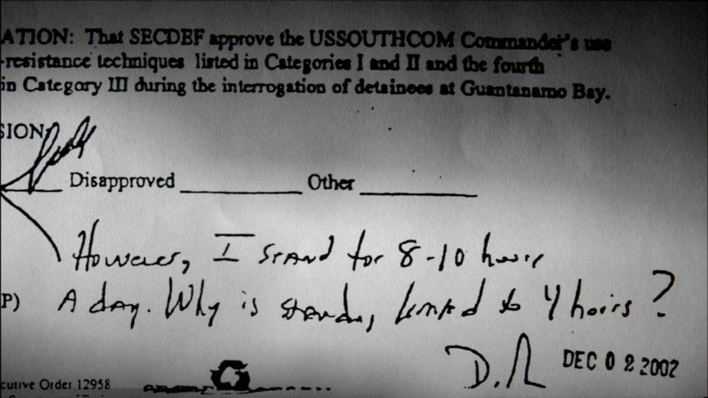 And it was that cover memo that requested authorization of ... the application of certain interrogation techniques. And the top memo gave Secretary Rumsfeld's approval for the application of some of those techniques. It's the memo with Secretary Rumsfeld's handwritten notations on the bottom saying that he stands 8-10 hours a day -- How come these detainees are only required to stand up to four hours a day? I was astounded! But my first reaction was that this was a mistake! Somebody just didn't read the documents carefully enough. [Tim Golden, New York Times Journalist] I think people in the Pentagon thought of Alberto Mora as a loyal, Republican, political appointee.