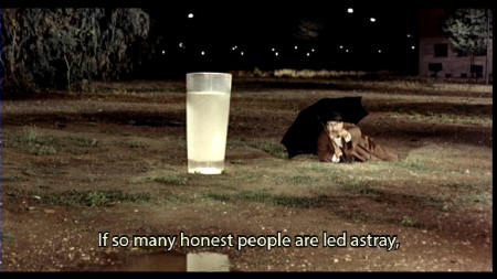 How have I harmed you, huh? Tell me that. [Antonio] I'll tell you. Because so many honest people are being led astray, and there's so much evil here on this good earth, and such a lack of faith and purity, and you are the one to blame. [Anita] But I haven't hurt anyone. I haven't done a thing. |