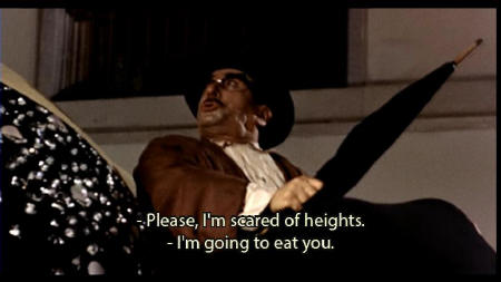 [Antonio] Let me go. I beg you, signora, let me down. I'm subject to dizziness. I have a weak heart. Anita: I'm going to eat you! [Antonio] Oh, mama, mama! Kiss kiss kiss. Ha ha ha ha. [Antonio] I can't die in this way. |