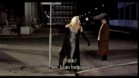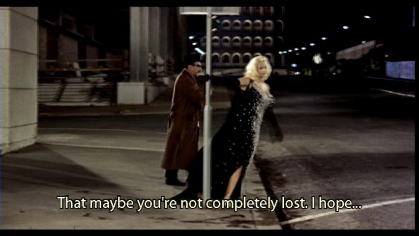 [Antonio] With all my heart, I would like to believe that there was something still good in you. Perhaps you're still not completely beyond saving. I hope so. I could help to lift you from the depths of iniquity. [Anita] Iniquity? I'd be willing to, for your sake. I'd be willing to give my entire life to it. |