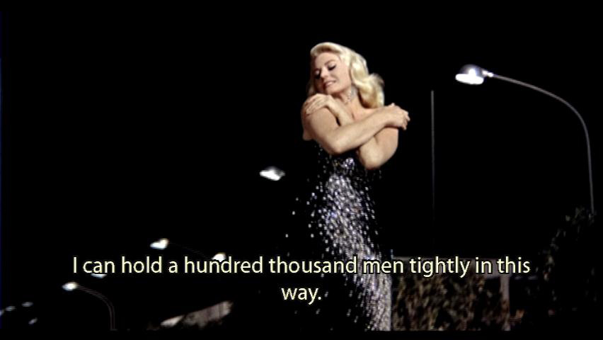 These arms of mine can hold more than a hundred men at once, and they can crush them. When I sway my hips, regiments of men quiver with desire. And if I lower my lashes, and look like this at someone, |