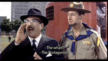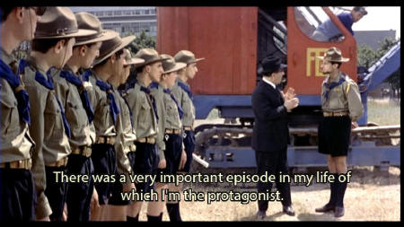 [Antonio] Thank you. The many dangers of the forests, the many dangers of the mountains, are indeed terrible dangers. But there are more terrible dangers still. More insidious. More double-faced. You are all wondering, I know, just what these terrible dangers are. I'm going to tell you a bit of an episode in my life in which I am humbly the protagonist. [Boyscout] The what? |