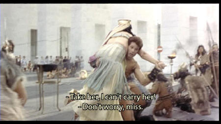[Extra] Look at this lousy cigarette. Everything in it but tobacco. [Hercules] Oh, oh, oh, oh! Take her, she weighs a ton! [Director] Just get her off camera. Put her down. Cut. Okay, okay, print the fifth and sixth. And bring me a smaller princess. |