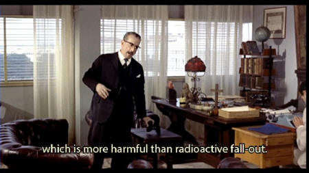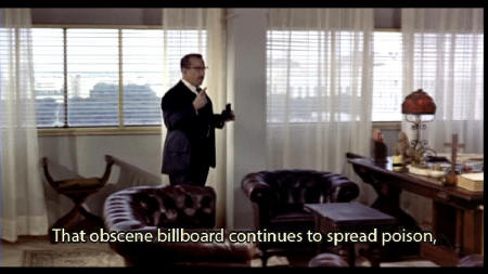 [Antonio] And the days all pass along. They pass, and then they become weeks, and this scandalous thing never ends. The poison keeps oozing out of that obscene poster, more frightful than the most frightful atom fallout. From my window, I can see the crowd of people stopping to look at the poster and -- keep writing son -- and acting as if they were suddenly seized by an unaccountable attack of dizziness. Interrupting their healthy bracing stroll of an evening, |
