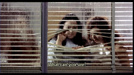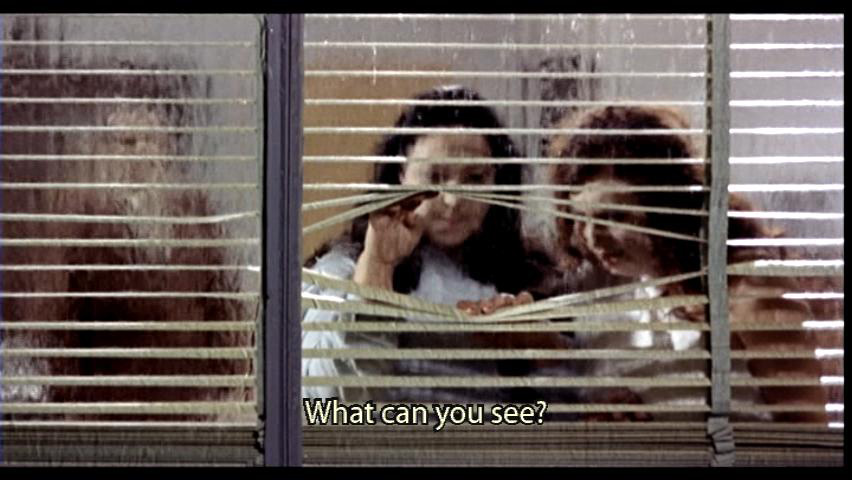 [Donatella] Saint Theresa. Holy Saint Theresa. My turn! [Antonio] Go to the window. Look at the poster. Describe it to me. |