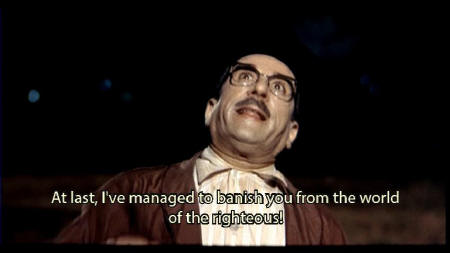 [Antonio] At last, I've gotten rid of you. You are no longer a part of the world of the just. And now, I must go on back to my own little house. [Anita] Antonio! Ha ha ha ha. Antonio! Ha ha ha ha. |