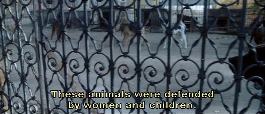 We're gonna need two more men on this. [Barking] These animals were defended by women and children. We put them down easily. [Brandt] This isn't the first time we've seen this. Why do they keep these animals? What, do they -- do they eat them?