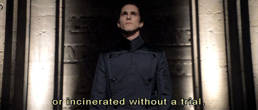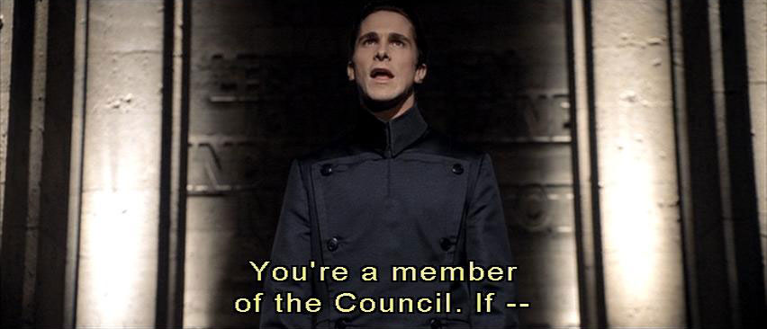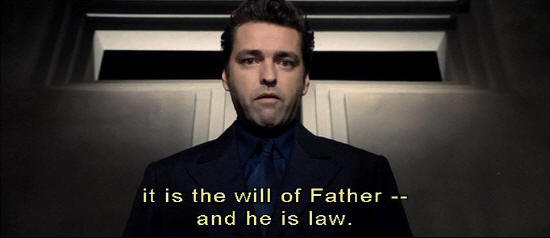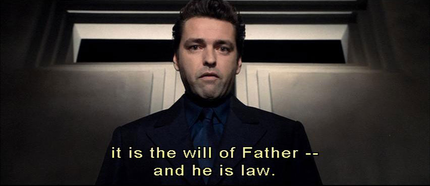 or incinerated without a trial. [Preston] But it's counter to law. You're a member of the Council. If -- [Dupont] It is not the will of the Council, it is the will of Father -- and he is law. [Preston] Sir ... without the logic of process, is it not just mayhem --