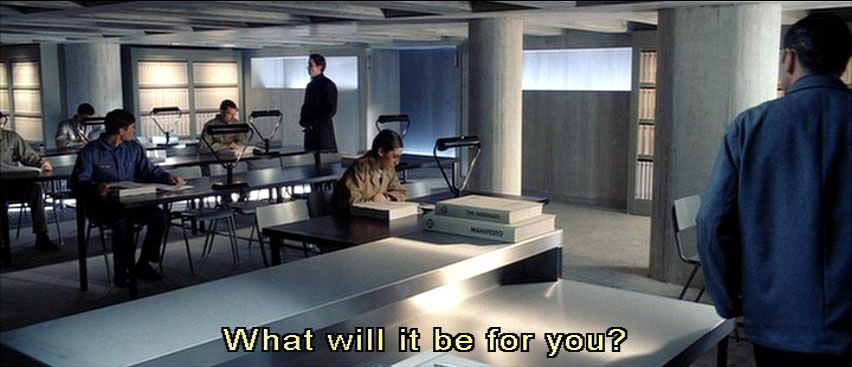 that we find our greatest -- [Librarian] Good afternoon, sir. What will it be for you? The latest copy of the inserts? Revised edition of the Manifesto? [Preston] Errol Partridge.